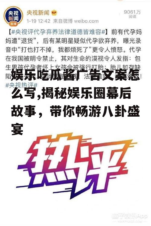 亲爱的读者们,你是不是也和我一样,每天在互联网上闲逛,时不时被那些有趣的娱乐吃瓜酱广告文案吸引眼球呢?今天,就让我带你一起探索如何写出让人忍不住点开的广告文案吧!