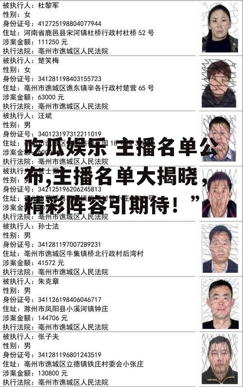 这次吃瓜娱乐主播名单的公布,无疑为咱们平台带来了更多的精彩内容。让我们一起期待这些主播们的精彩表现,共同度过一个欢乐的时光吧!别忘了,关注他们,不错过任何一个精彩瞬间哦!