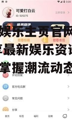 首先,你得知道,“吃瓜娱乐主页官网入口”可不是随便哪个APP,它可是集合了娱乐圈最新资讯、热门话题、搞笑视频等多种娱乐元素的大杂烩。在这里,你不仅能看到明星们的八卦新闻,还能看到各种搞笑段子、热门话题讨论,简直就是一个娱乐小天地!