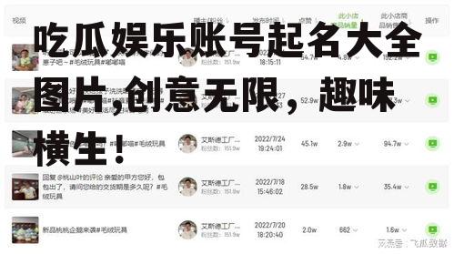 你是不是也和我一样,每天刷着手机,看着那些吃瓜娱乐账号,觉得它们的名字真是五花八门,有趣极了?今天,我就来给你盘点一下那些让人眼前一亮的吃瓜娱乐账号起名大全,还有它们的图片,保证让你笑翻天!