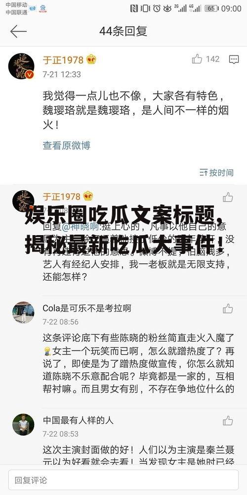 3. 娱乐至死:在娱乐圈,吃瓜文案标题已经成为一种娱乐现象。人们通过关注这些标题,来满足自己的好奇心和娱乐需求。