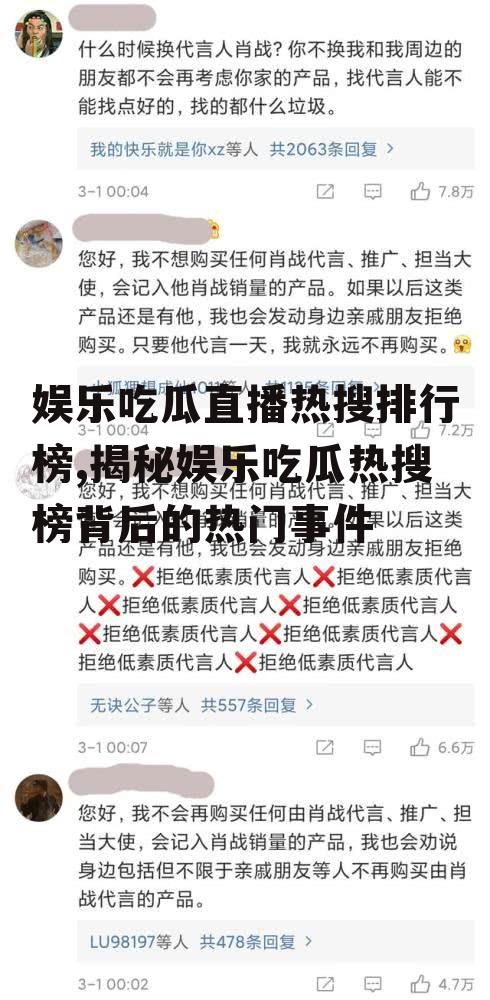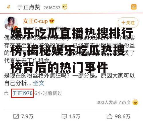 最近是不是也被那些直播间的热闹气氛给吸引了?没错,说的就是你,那个总忍不住点开看看的“吃瓜群众”。今天,就让我带你一起揭秘那些让人欲罢不能的娱乐吃瓜直播热搜排行榜,让你一网打尽那些热门话题!