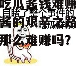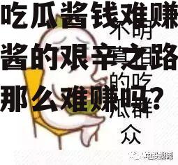 说到娱乐圈,那可是个热闹非凡的地方,每天都有新鲜事,让人忍不住想八卦一下。这不,最近有个话题在网络上炒得火热——“娱乐吃瓜酱钱难赚吗?”咱们就来聊聊这个话题,看看娱乐圈的“吃瓜酱”们,是不是真的像大家说的那样,赚钱容易得不得了呢?