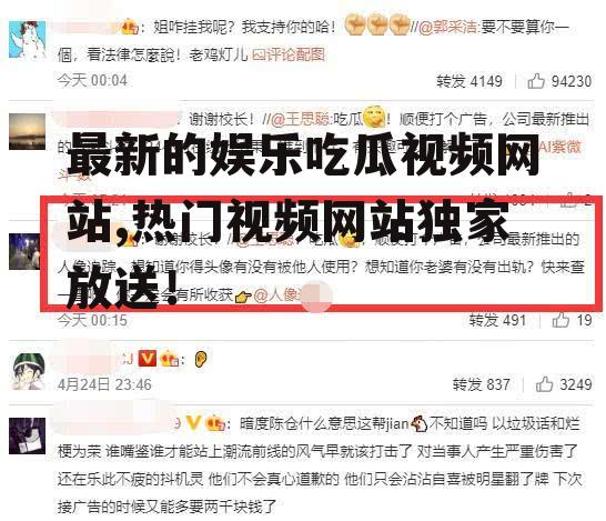 你有没有发现,最近网上又掀起了一股“吃瓜”热潮?没错,就是那种让你一打开视频网站就能看到各种娱乐八卦、明星趣事的地方。今天,我就要带你深入了解目前最火的娱乐吃瓜视频网站都有哪些亮点,让你轻松成为朋友圈的“八卦达人”!