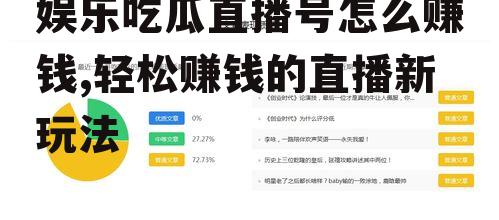 娱乐吃瓜直播号赚钱的秘诀在于:内容优质、互动频繁、广告植入巧妙、电商带货顺畅、会员制度稳定、跨界合作拓展、数据分析精准。只要掌握了这些技巧,相信你也能在直播这条道路上越走越远,收获满满!