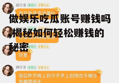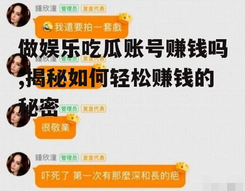 来说,做娱乐吃瓜账号确实可以赚钱,但要想成功,你需要付出努力,保持热情,不断创新。当然,这并不是一条容易走的路,但只要你愿意尝试,相信你也能在这个领域找到属于自己的位置。那么,你准备好开启你的娱乐吃瓜之旅了吗?