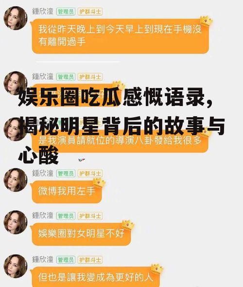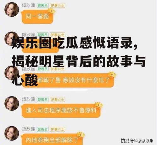 娱乐圈的吃瓜感慨语录,见证了明星们的喜怒哀乐。在这个光鲜亮丽的舞台上,他们经历了爱情、分手、出轨、转型、离世等各种人生百态。而我们,作为吃瓜群众,也在这场盛宴中,感受到了人生的酸甜苦辣。让我们珍惜眼前人,珍惜每一个美好的瞬间。