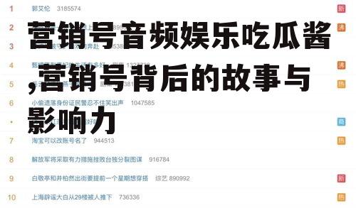 比如,有些营销号音频会请来一些知名主播,他们那独特的嗓音和丰富的情感表达能力,让听众仿佛置身于一个充满故事的世界。有时候,一个简单的“吃瓜酱”就能引发一场热烈的讨论,让人忍不住想要加入其中。