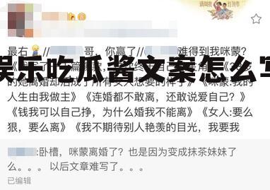 一篇好的娱乐吃瓜酱文案,内容要丰富,既要有趣,又要真实。你可以从以下几个方面入手: